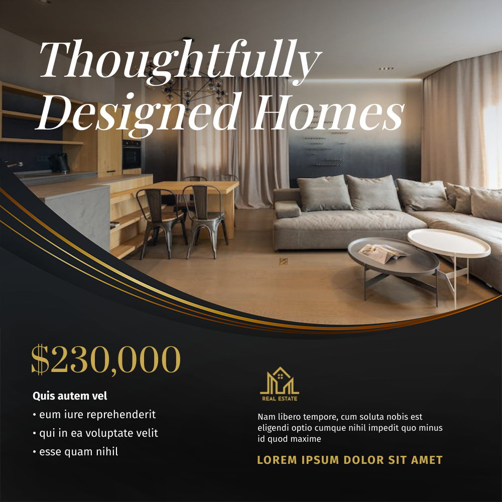 Black Gold Elegant Real Estate Listing Instagram Post Template