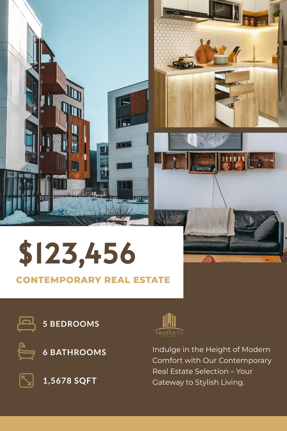 Brown Beige Modern Photo Collage Real Estate Listing Pinterest Pin Template