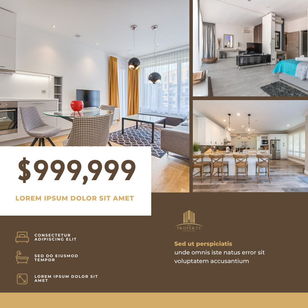 Brown Beige Modern Photo Collage Real Estate Listing Instagram Post Template