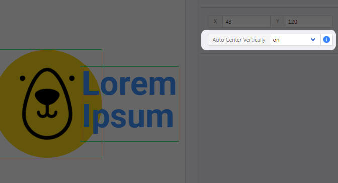 This is an advanced feature that applies only to groups. This feature automatically centers your grouped items vertically in your canvas. If your group contains objects with a variable amount of text, you can use this flag to always keep the group in the center of the template.