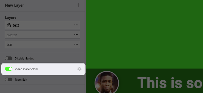 Note: The green background indicates the location of the placeholder. If you'd like to customize where the video appears in the template, you can modify the placeholder settings by clicking the gear icon.