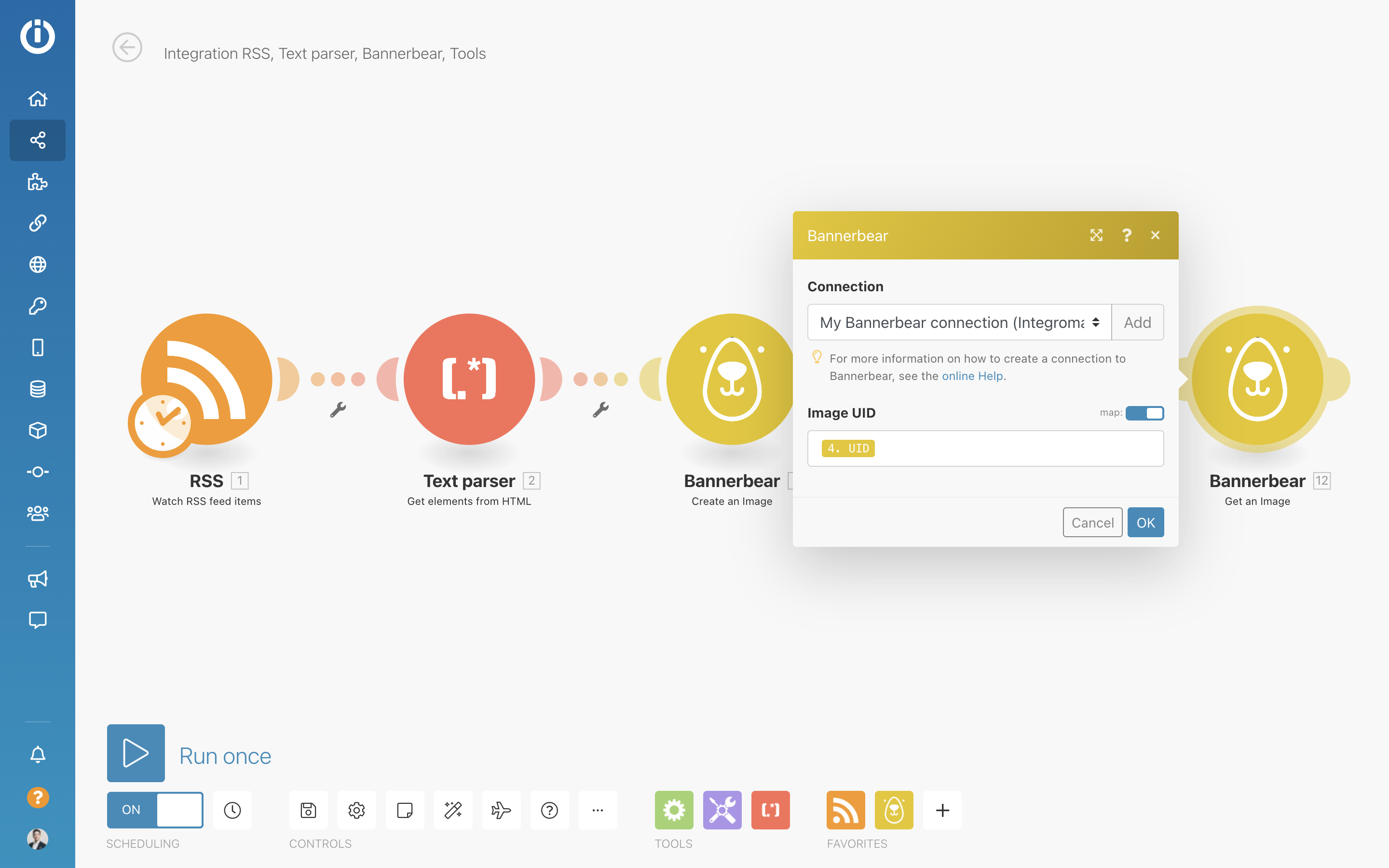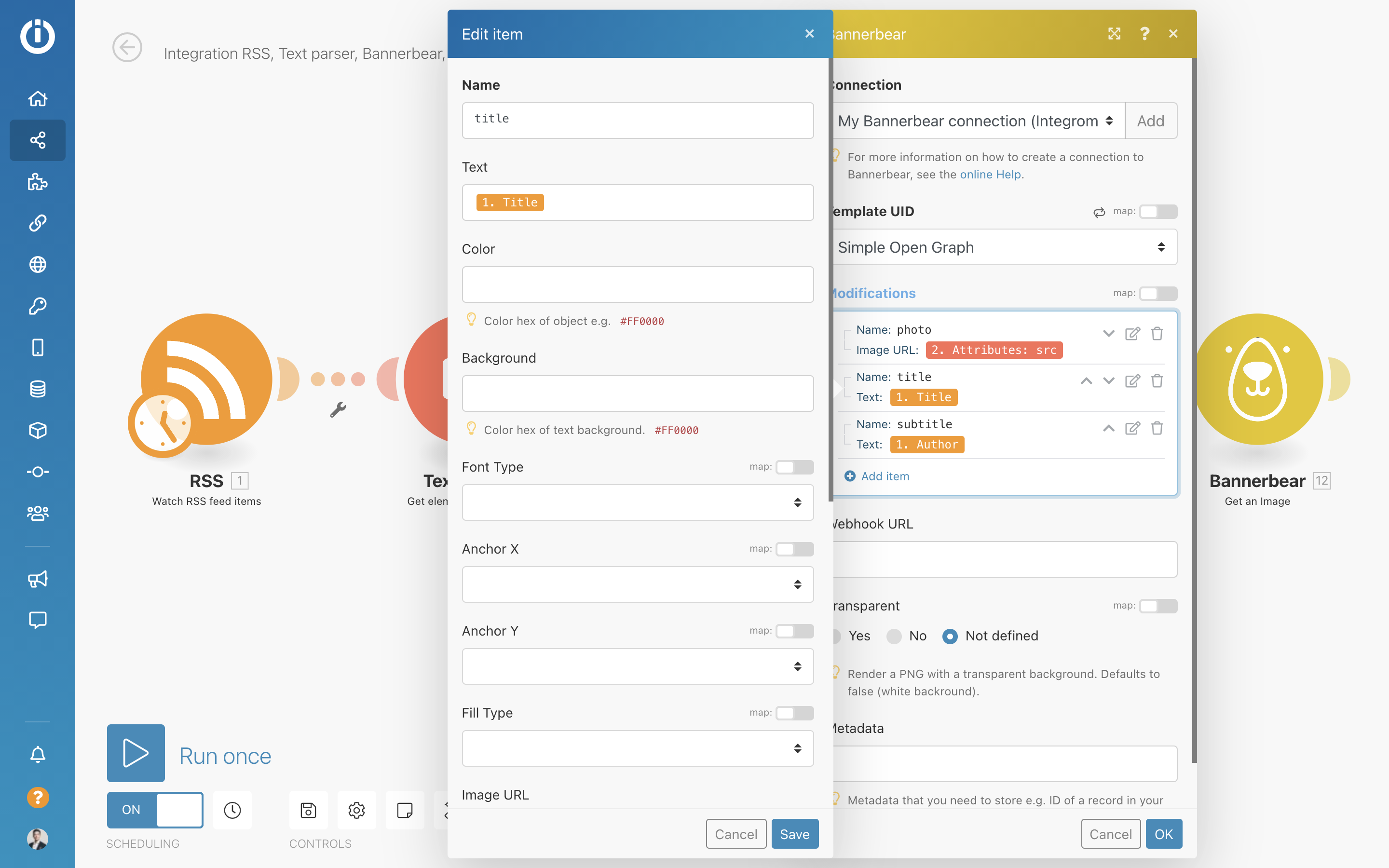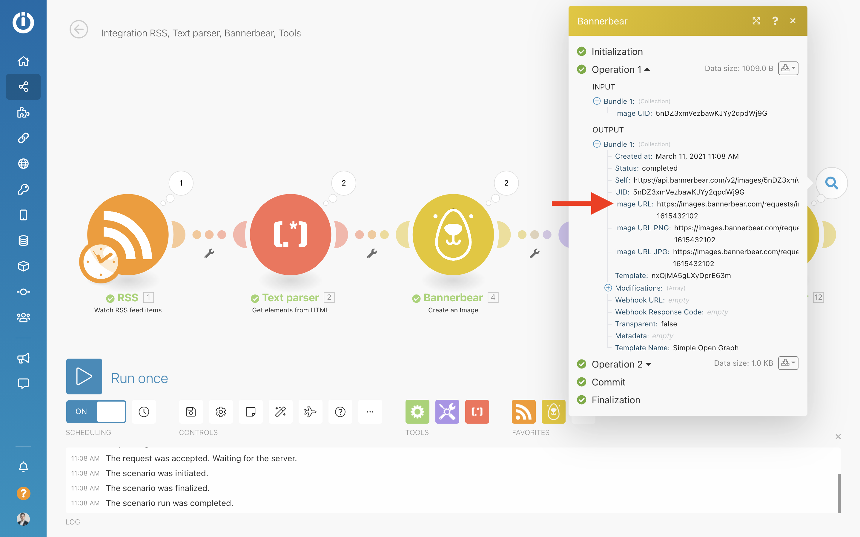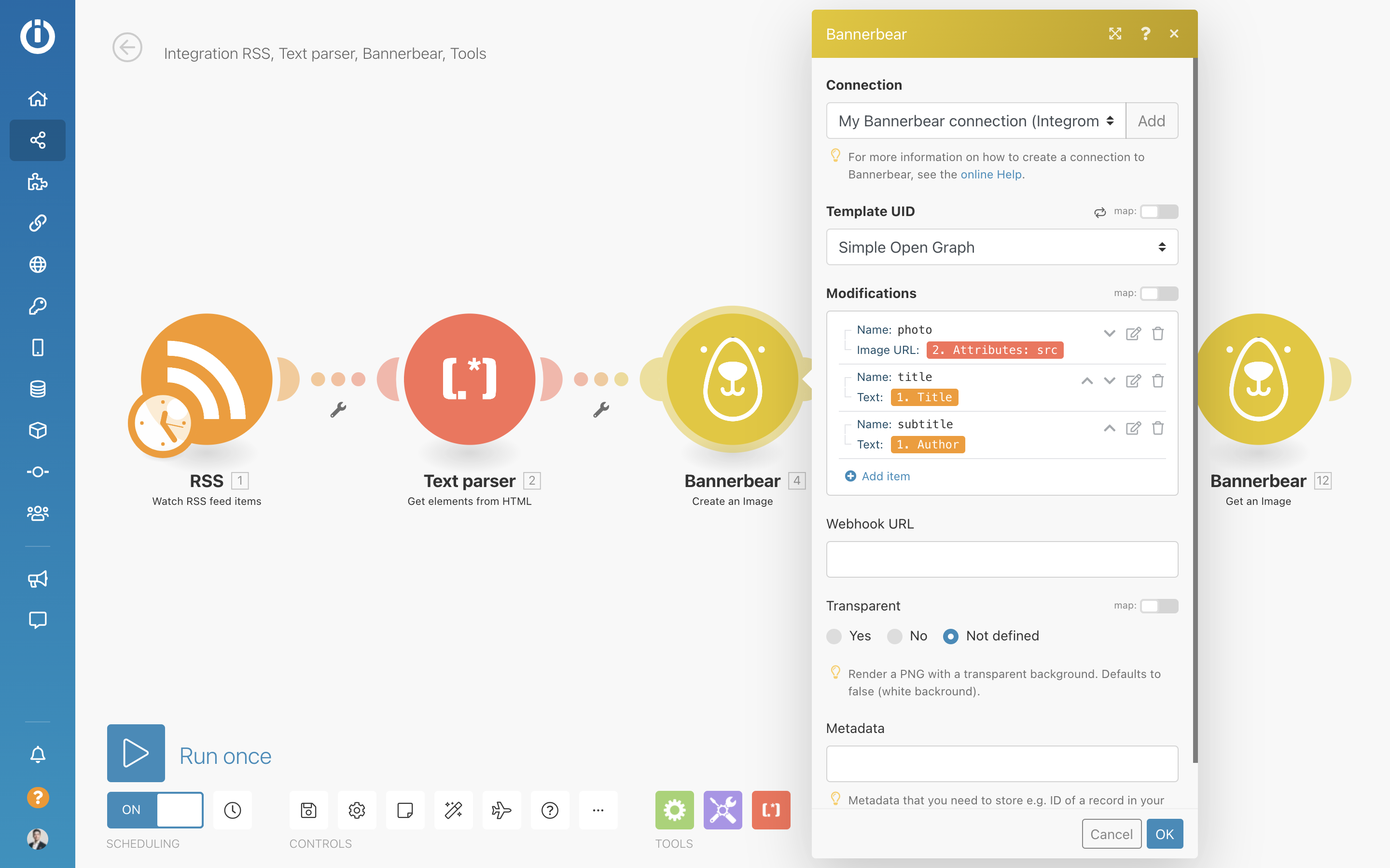 This is a sort of "Bannerbear 101" scenario. You can use the principles of this to build various other scenarios - but essentially what we are doing here is:
