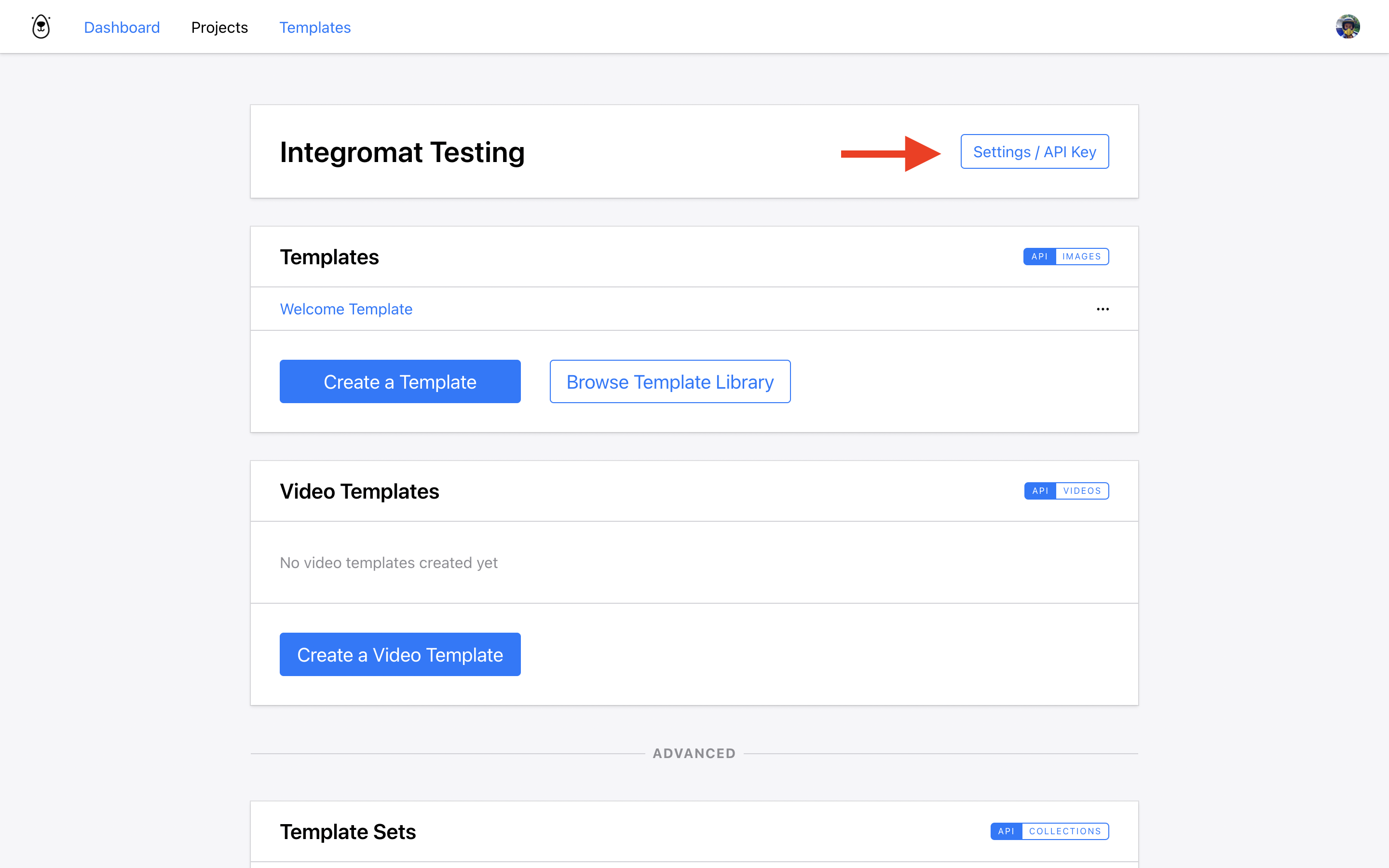 Next you should copy your Bannerbear Project API Key to the clipboard - this is how Integromat will connect with your Bannerbear account. You'll find the API Key in the Project's "Settings / API Key" section: