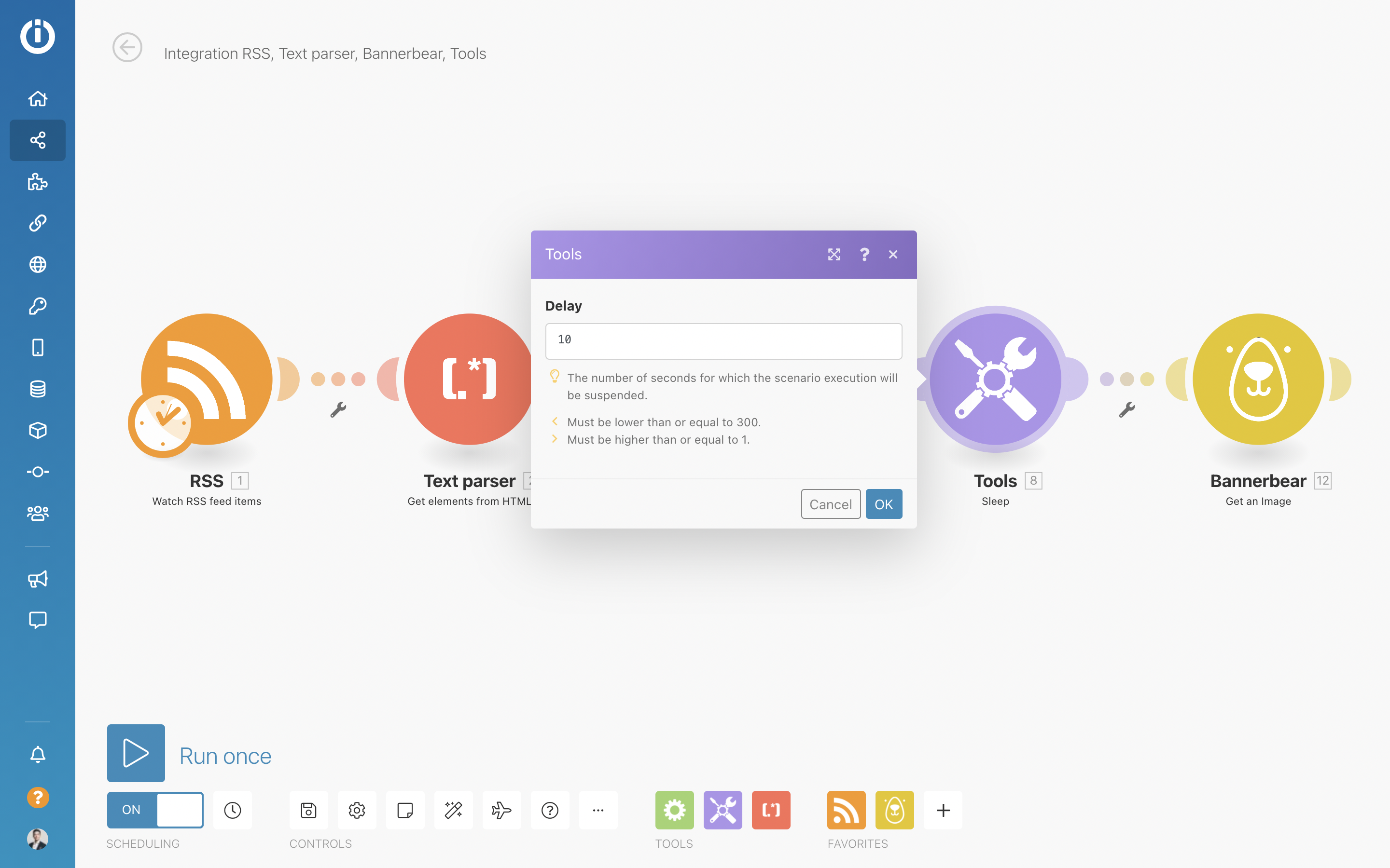 In general, images are rendered in a couple of seconds. But just to be sure I'm sleeping the scenario for 10 seconds. You could even get creative here and poll Bannerbear until the image is generated - but for now we will use a simple sleep step.