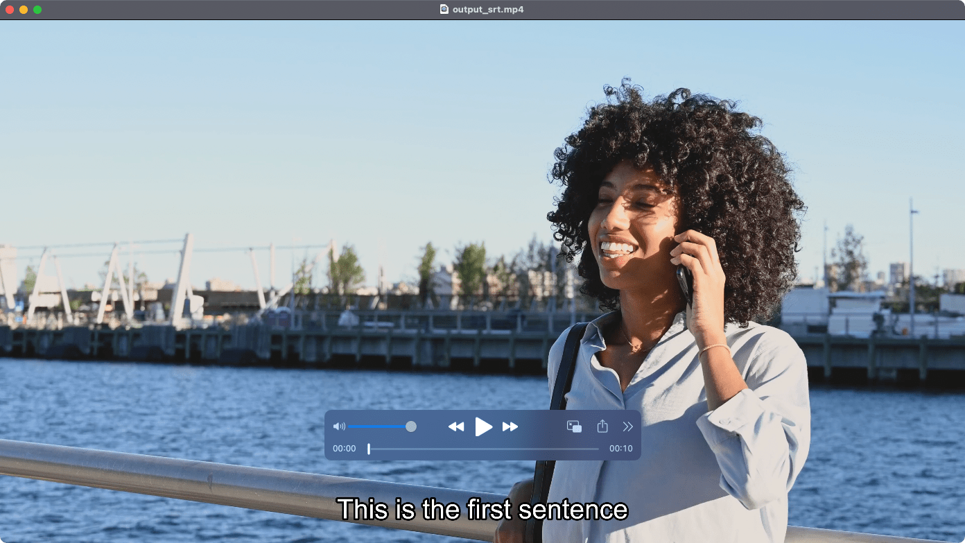 Next, run the command below to add the subtitles in subtitle.ass to your video: