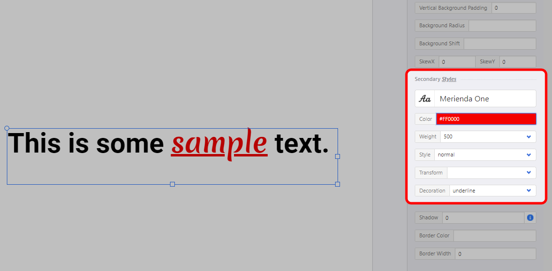 - Select your text object → scroll down to Secondary Styles