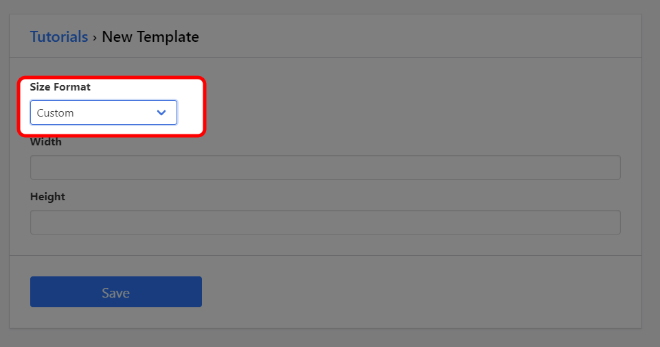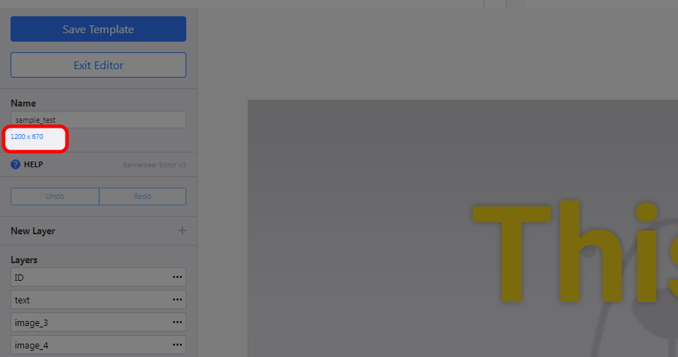 - On the left panel below the template name, click the current template size/dimensions to change it
