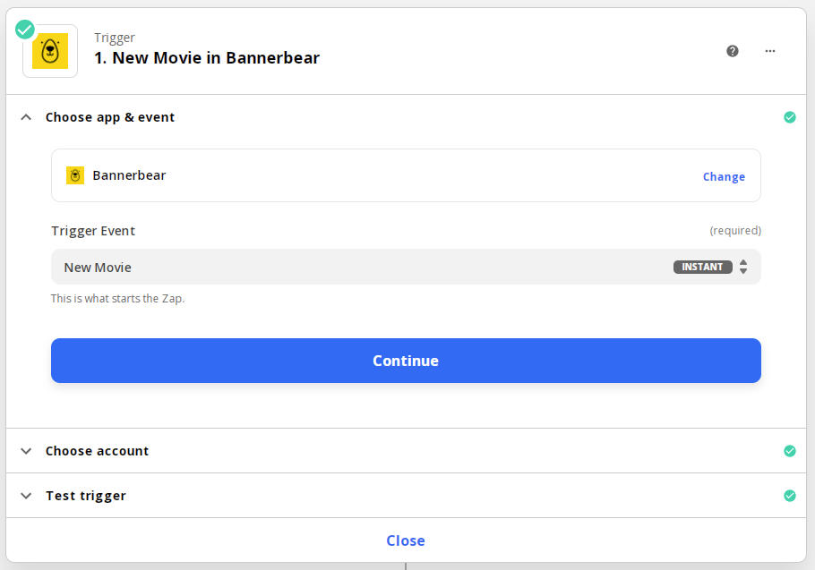 - Create a new Zap with the New Movie trigger event (This is an instant event that triggers when a new Movie is 100% rendered)