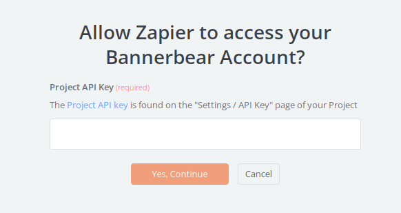 Connecting to Zapier requires your Bannerbear project's API Key.