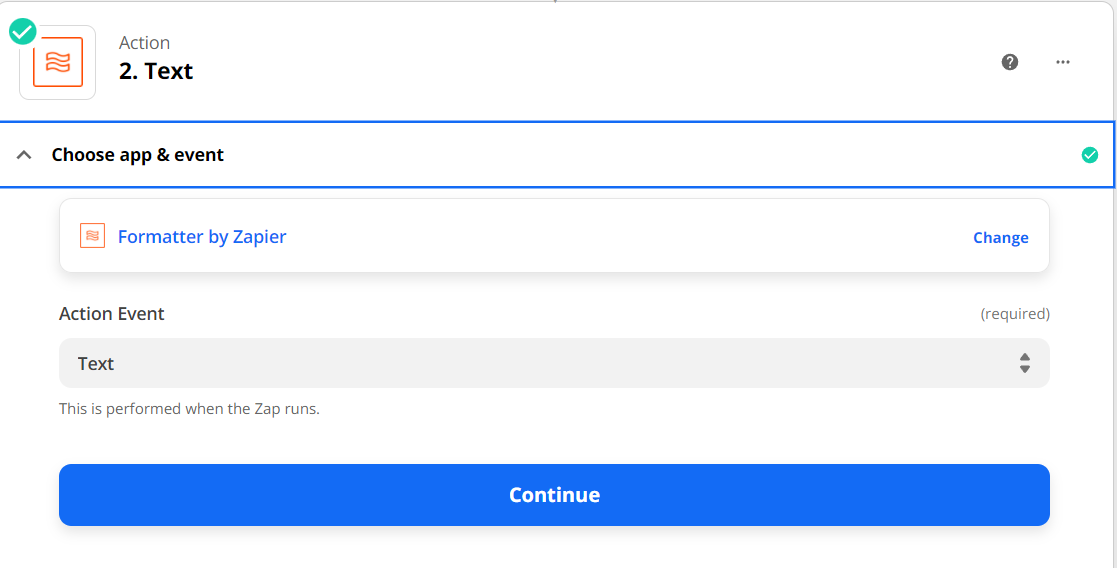 - Add an Action and select Formatter by Zapier