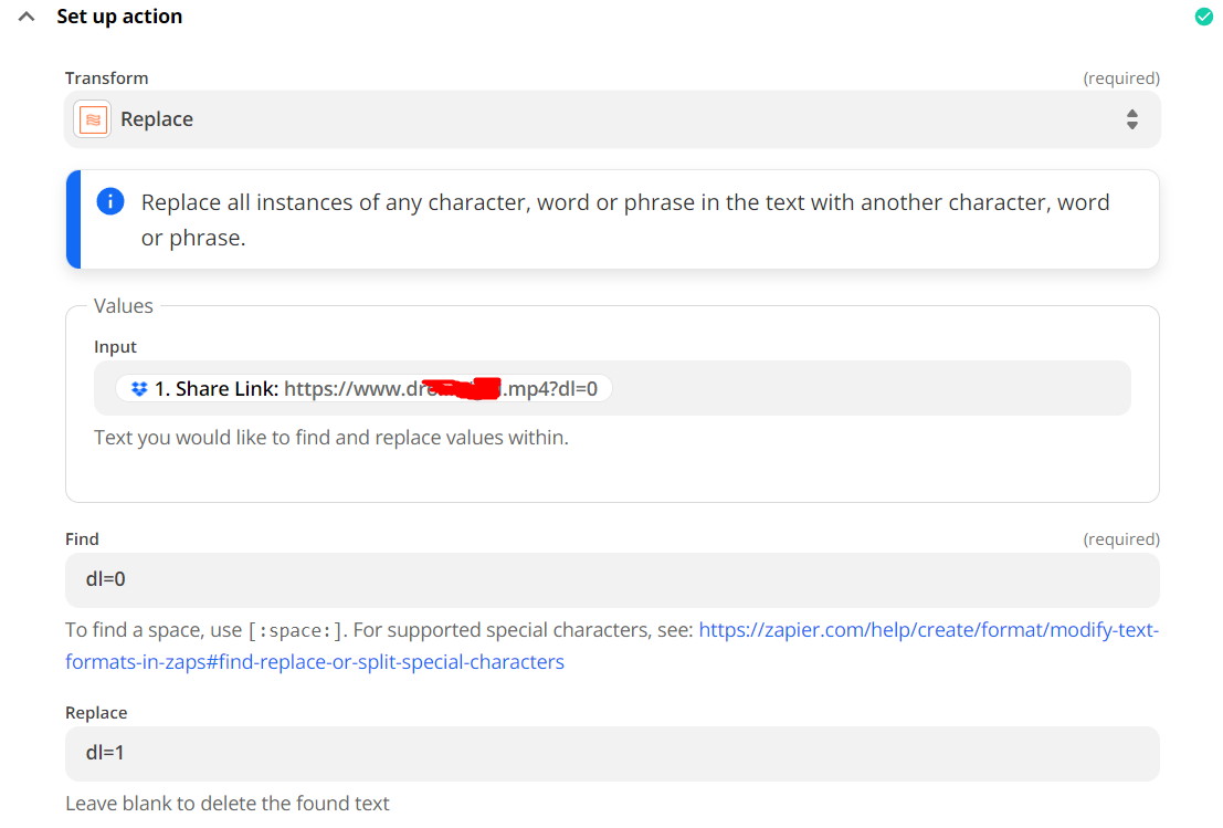 - Test the action and verify that the output has generated a link with the new