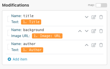 Modifications are simply a list of changes you want to make to the template. To change a layer in a template, you need to reference it by its name.