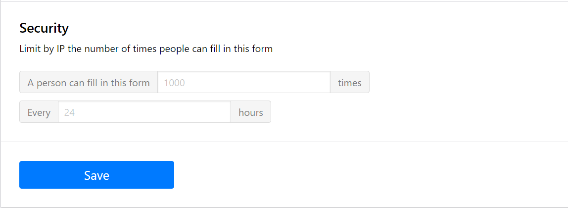 and enter the values for the number of times a person can fill the form and the time limit (in hours)