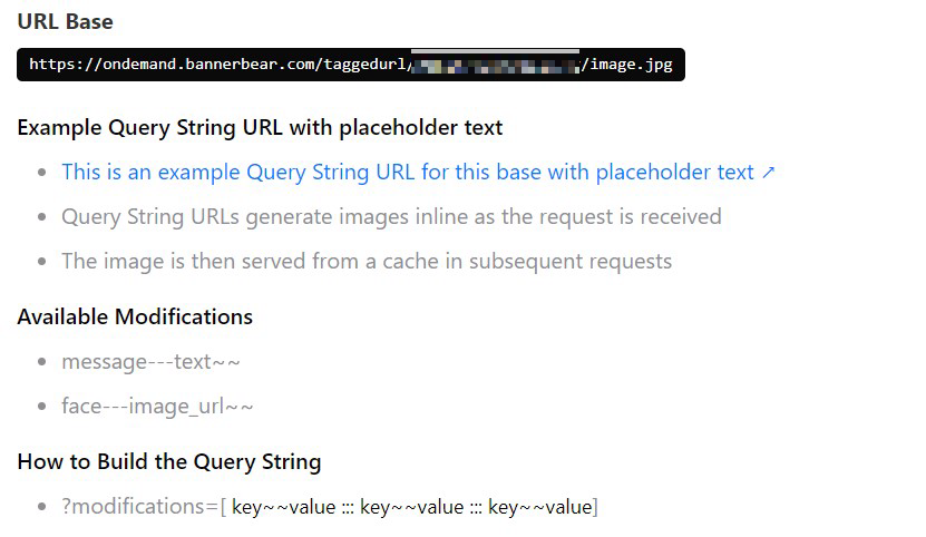 You start with a URL base and construct the modifications with strings of data according to your template's layers. Check out How do I generate images using query strings for steps on how this is done.