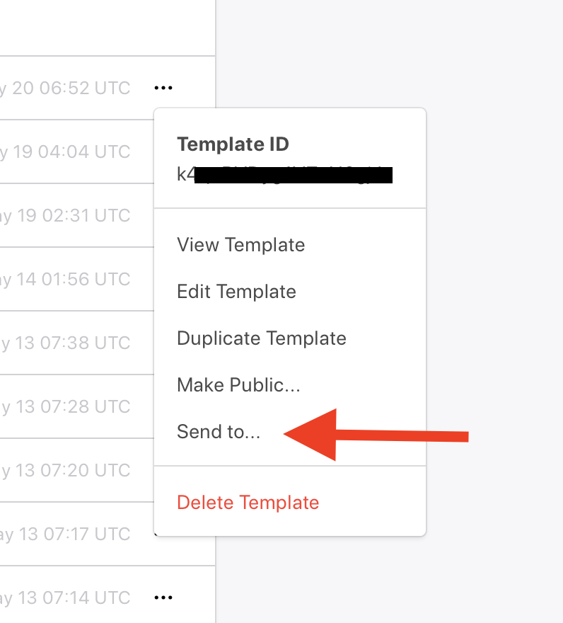 On any template you have created you will see the "Send to…" option in the template dropdown menu.