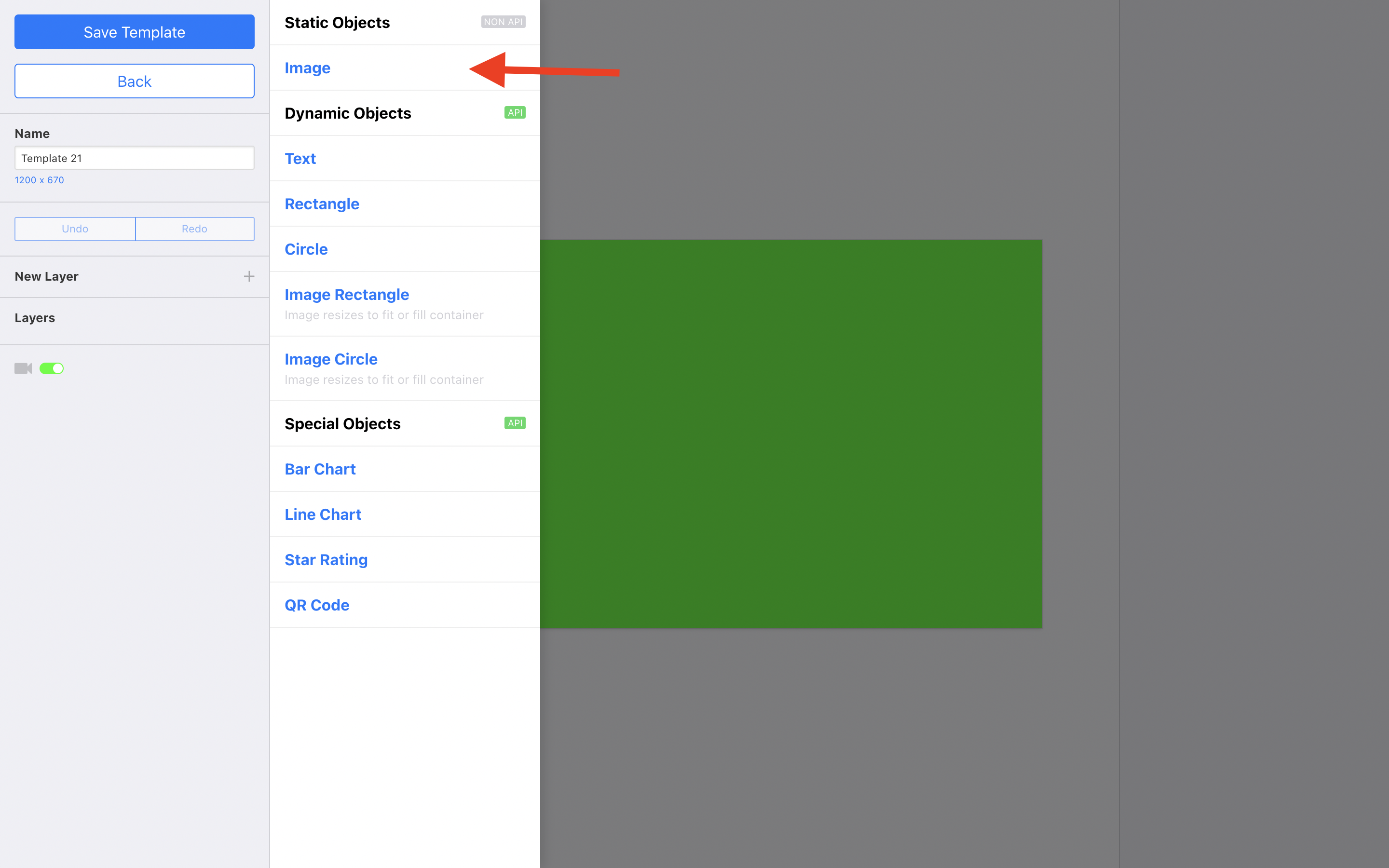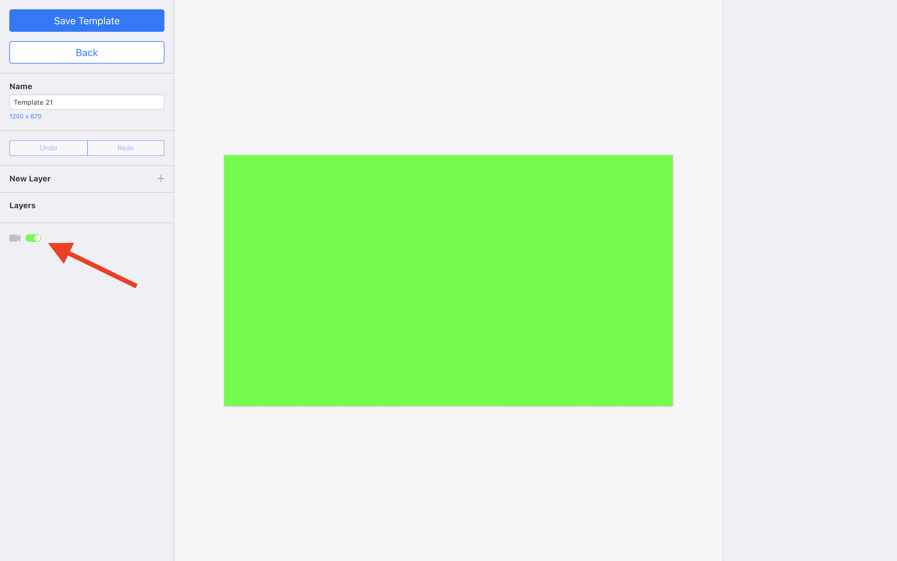 Start off by creating a new template of any size, in one of your projects. Go to the Edit Template screen. At this point you can flick on the video green-screen button: