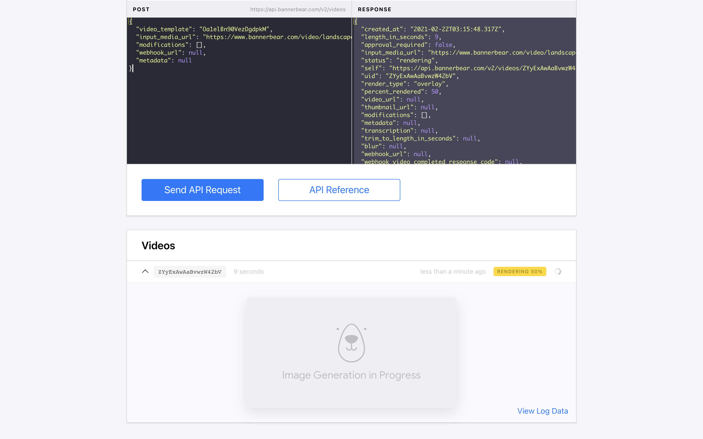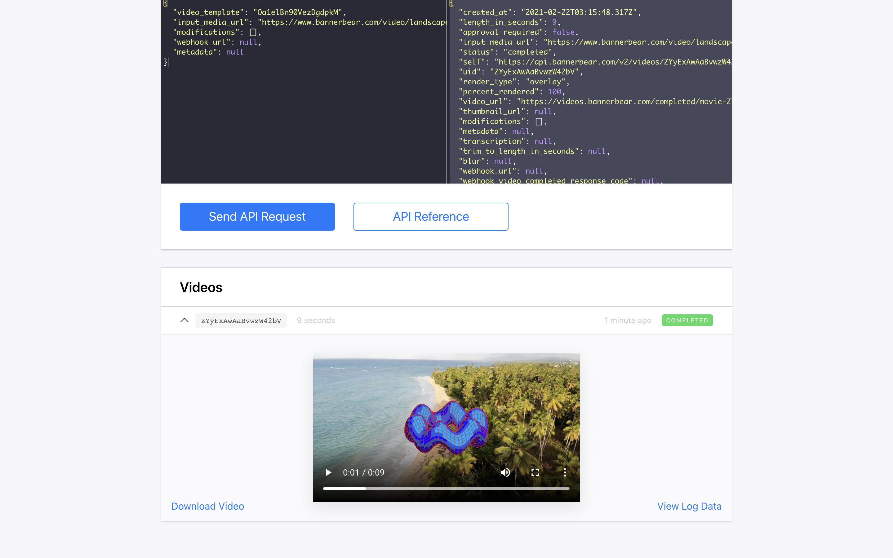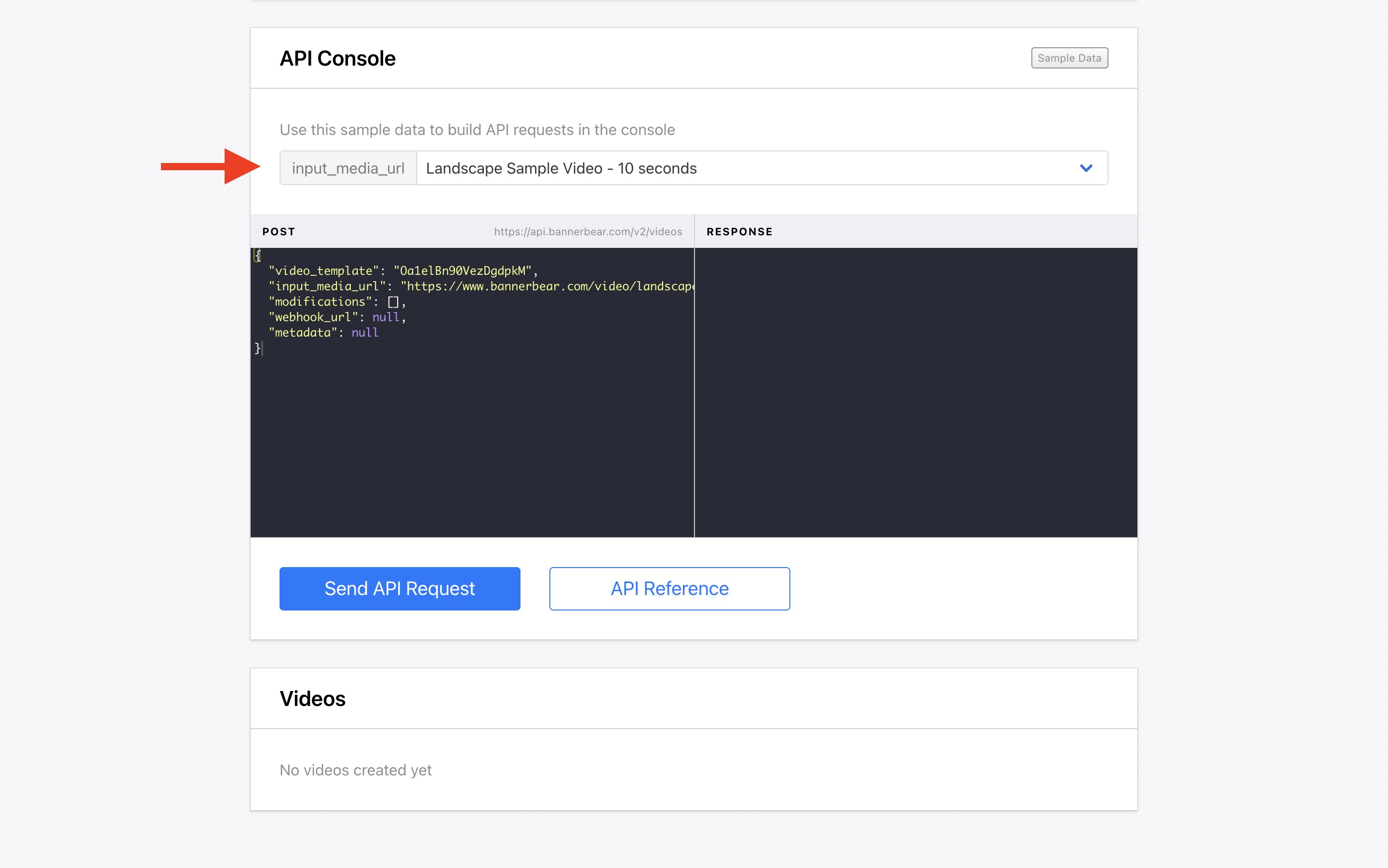 Scroll down to the API Console and choose a sample video to push to the Bannerbear API: