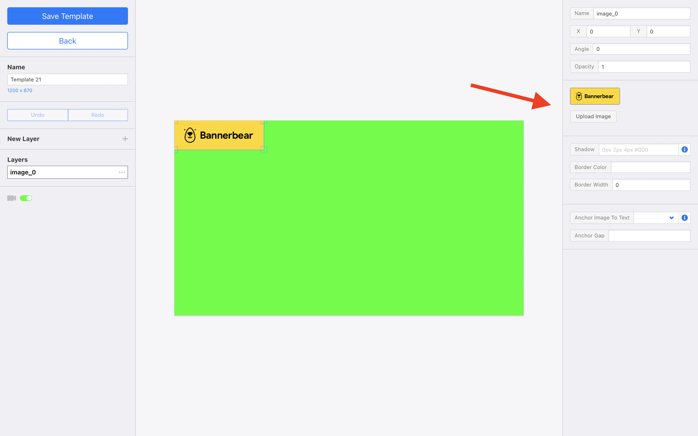 The new Image layer will be added using a default image (the Bannerbear logo) - replace it with the gif you want to use: