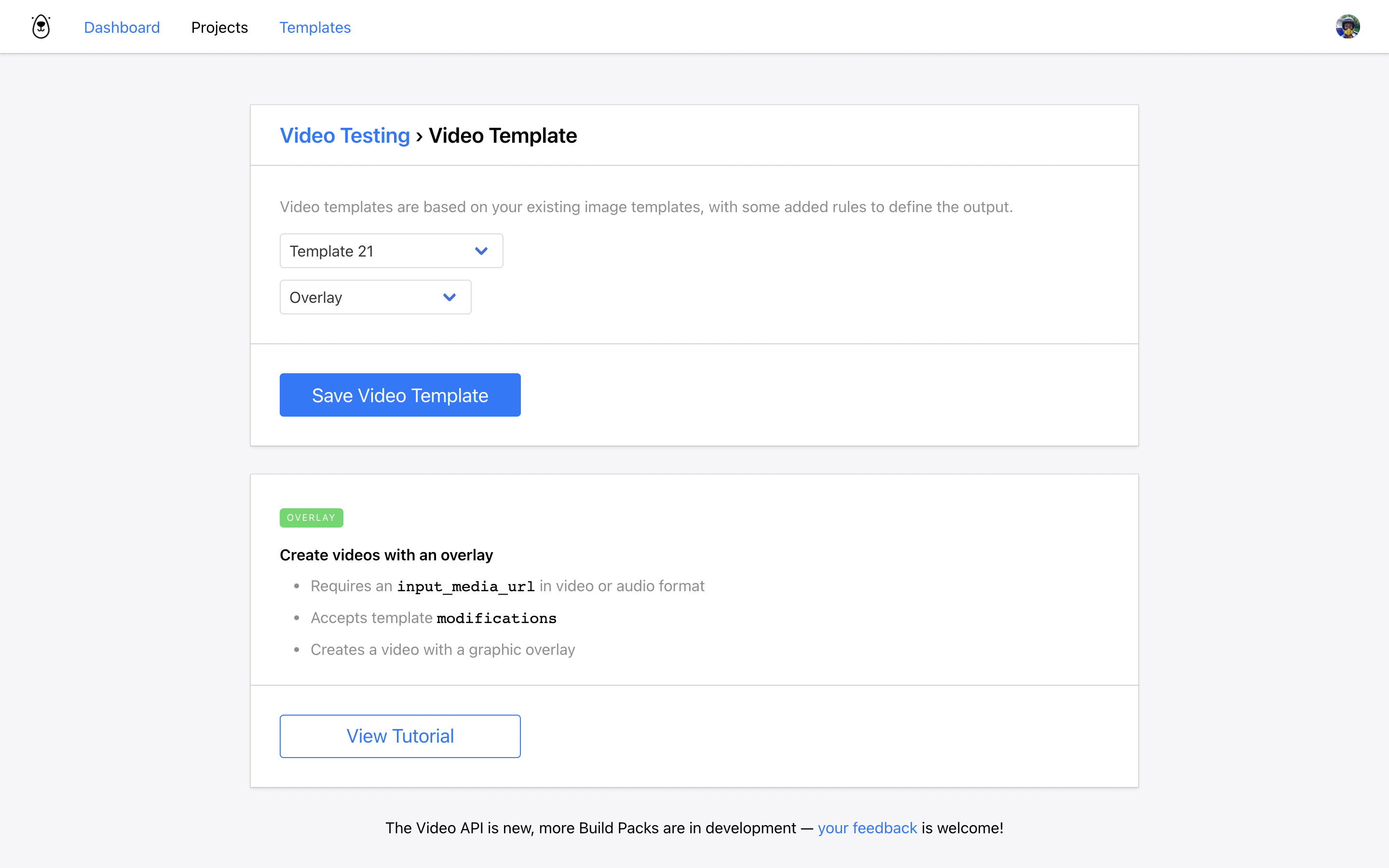 Choose the template you just created, and for the Build Pack just choose the Overlay. You can use animated gifs with any build pack, but Overlay is the simplest one to demonstrate in this tutorial :)